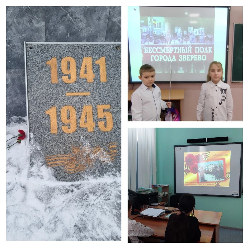 13 февраля в школе № 4 прошли классные часы, посвященные освобождению Зверево от немецко-фашистских захватчиков. Затем ученики отдали дань памяти героям, возложив цветы к памятнику Погибшим воинам. |