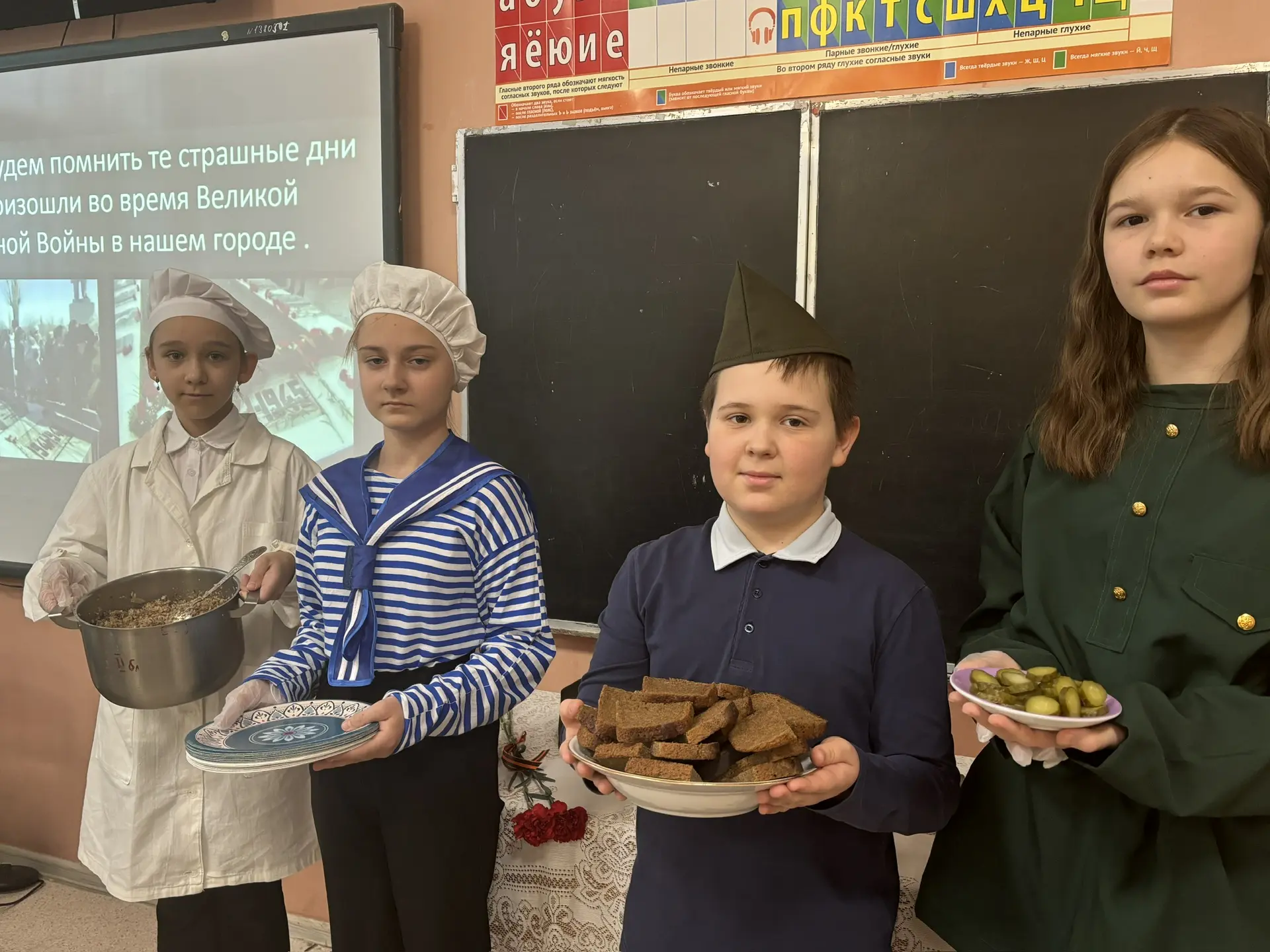 Ежегодно 13 февраля все жители нашего города отмечают знаменательную дату - День освобождения Зверево от немецко-фашистских захватчиков. В 4 «Б» классе МБОУ СОШ № 4 им. Д. В. Бондаренко сегодня прошёл классный час «Сердцем к подвигу прикоснись». Ребята поговорили о боях за освобождение станции Зверево, о воинах-освободителях, почтили память павших минутой молчания. Не обошлось конечно же и без солдатской каши. Традиционно каждый год ребята сами варят гречневую кашу и угощают своих одноклассников. Горячая гречневая каша с тушенкой, соленый огурчик и кусочек черного хлеба - оказывается нет ничего вкуснее. Завершился классный час возложением цветов к могилам погибших Зверевчан 13 февраля 1943 года. |