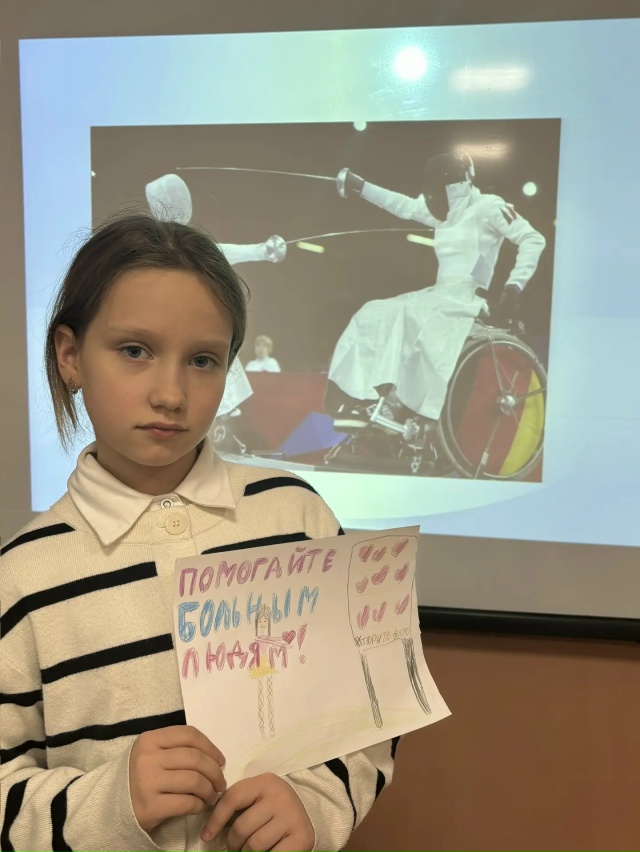 К Международному дню инвалидов, который отмечается 3 декабря, в течение дня в 4 "Б" классе МБОУ СОШ №4 им. Д.В.Бондаренко были проведены мероприятия, направленные на привитие детям доброты, милосердия, сострадания, щедрости, воспитание в них уважительного, гуманного, внимательного отношения к инвалидам и признание их как полноценных членов общества. Ребята приняли участие в классном часе на тему: «Верь в себя!»,рассказали о детях инвалидах, героях параолимпийских игр, их проблемах, приняли участие в выставке рисунков «Мой мир».