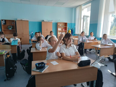 Традиционно, после торжественной линейки поднятия флага РФ, учащиеся школы отправляются на урок "Разговоры о важном".