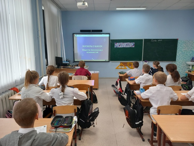 После линейки в классах прошли традиционные занятия «Разговоры о важном» по теме «Общество безграничных возможностей» . Его ключевая цель – расширение представлений обучающихся о возможностях самореализации в различных сферах жизни общества, в том числе для людей с инвалидностью.