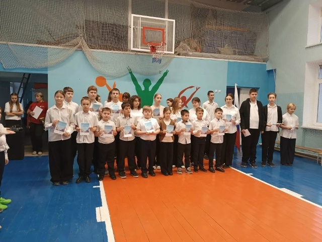 На линейке вручили грамоты за участие в городском конкурсе рисунков ко Дню матери, медали и кубок за участие в спортивных соревнованиях по тэг-регби, дипломы победителям Всероссийской олимпиады "Безопасный интернет"