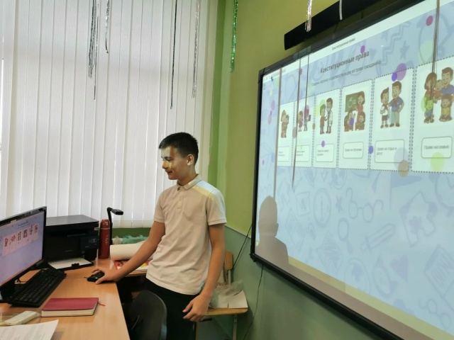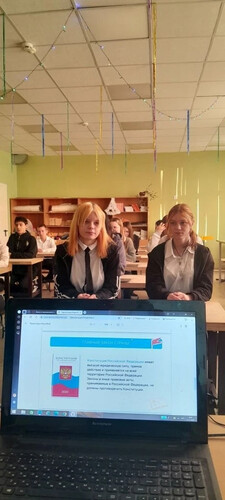 После линейки прошли уроки "Разговоры о важном", на тему: "Закон и справедливость", приуроченные ко Дню Конституции Российской Федерации