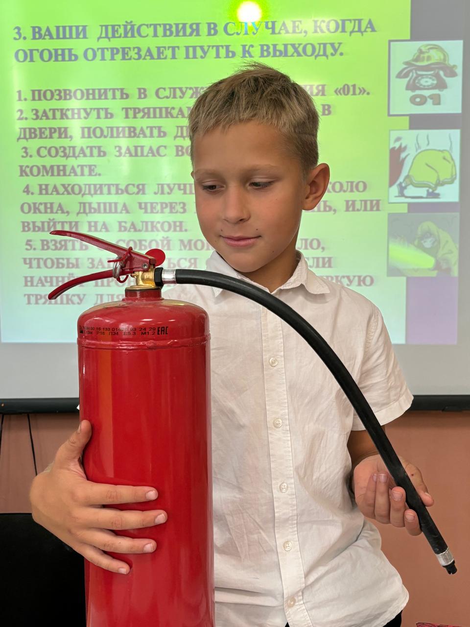 Сегодня в 4 «Б» классе МБОУ СОШ 4 им. Д. В. Бондаренко прошел урок «Пожарная безопасность». Ребята обсудили, что является причиной возникновения пожара,повторили правила пожарной безопасности, отработали действия при возникновении пожара.Самым интересным « гостем» на уроке конечно стал огнетушитель. И в конце урока ребята запечатлели его в своих рисунках.