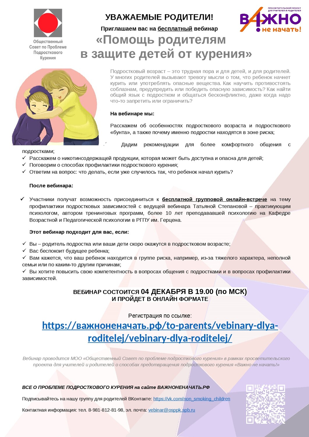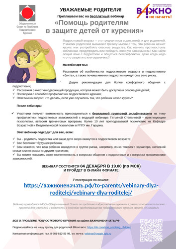 5:55 PM Вебинар "Помощь родителям в защите детей от курения" | |